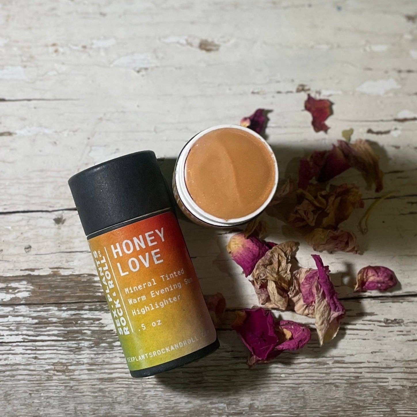 Ingredients: Dark in the Daytime: coconut oil*, beeswax*, sunflower oil*, cocoa butter*+, rose, caranuba wax*, lecithin*, vitamin e, non-nano zinc, mica, mineral tint. Honey Love: coconut oil*, b